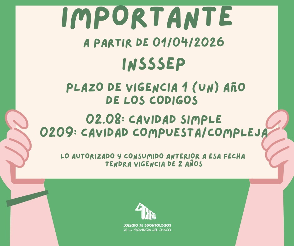 NUEVA VIGENCIA (GARANTIA) DE CODIGOS 02.08/02.09 OBRA SOCIAL INSSSEP 1 (UN) AÑO DESDE SU CONSUMO LO ANTERIOR AL 01/04/2026 AUTORIZA...