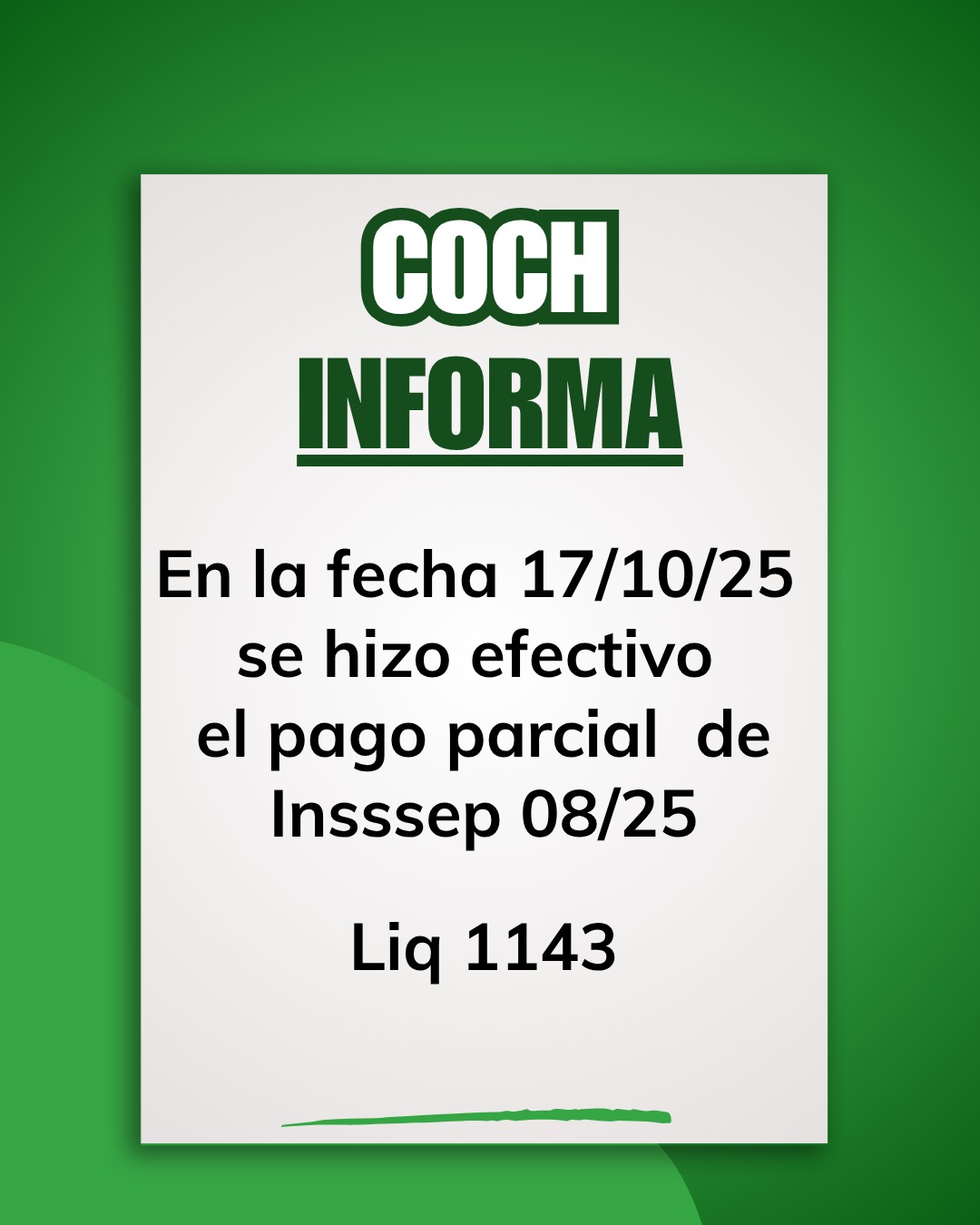 En la fecha se hizo efectivo el pago del otro 50% del mes septiembre 2023 , Liquidación Nº1063 se realizarán el otro 50%de los débitos y créditos de Agosto 2023.