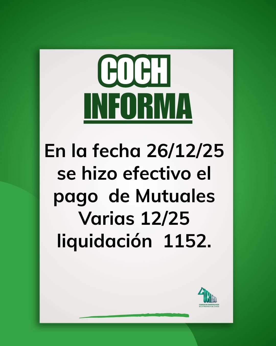 En la fecha 26/12/25 se hizo efectivo el pago cancelatorio de Insssep 10/25 liq 1151